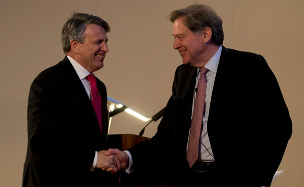 Ben Van Beurden, CEO de la Royal Dutch Shell, a la izquierda, y el presidente del grupo BG (British Gas) Andrew Gould se estrechan la mano en la conferencia de prensa donde se anuncia que la Royal Dutch Shell ha acordado la compra de la British Gas, 8 de abril de 2015. (AP Photo / Alastair Grant)Vale la pena aclarar la binacionalidad de la Shell: debemos recordar que la empresa tiene dos exigencias: primero, que el 60% por ciento de los cargos directivos y de decisión deben pertenece al sector británico, y el segundo requerimiento exige que el 60% de las acciones debe ser negociadas en la bolsa de valores de Ámsterdam. Claro que este disfraz holandés es muy vistoso como algunos zuecos, pero en la bolsa holandesa pueden operar, comprar y vender capitales y personas físicas y “morales” británicas. Suponemos que el Ingeniero Juan José Aranguren debe tener acciones bursátilmente inglesas aunque guardadas en Holanda, porque también se supone que muchas de ellas tienen origen en “bonus” por reconocimiento de su eficiencia como presidente de la filial en Argentina y, seguramente, esto no se dice, por su lealtad a la petrolera británica2.Cuando el actual ministro de Energía comienza su vida encumbrado en la carrera de las puertas giratorias, inteligente concepto utilizado por los norteamericanos para mostrar cómo algunos personajes sin ética alguna pasan de CEO privado a funcionario estatal, para luego seguir la secuencia, a veces repetidas dos o tres veces o sin límites. Para eso, en Argentina, y en Estados Unidos y en todos los países existen normas que traban las puertas giratorias o le ponen un alto nivel de impedimentos para evitar el abuso. En Estados Unidos es famoso el caso de un vicepresidente que luego de decenas de años en su empresa pasó al sector estatal para luego volver disimuladamente a la petrolera privada. Mister Halliburton (Dick Cheney) fue CEO ejecutivo de Halliburton y se transformó en vicepresidente del país acompañando al hijo de Bush, y estableció la ley de Energía que lleva su nombre por la que se eliminaron importantes normas ambientales y potenció a su firma de origen como la principal petrolera de servicios del país norteamericano. También impuso el fracking, pero los resultados de algunas de sus empresas no son lo óptimo que se esperaba.
