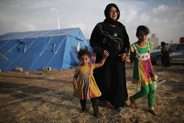 Fragmento del artículo "Kurdistán iraquí, quinta columna occidental en Medio Oriente", publicado el 28 de Noviembre de 2014, de Andre Vltchek, filósofo, escritor, periodista investigador, realizador de cine e internacionalista: "La Región Autónoma Kurda de Irak (con Erbil como capital) trata de presentarse como relativamente estable y crecientemente próspera, 'no como el resto de Irak'. Posee parte de las mayores reservas de petróleo del mundo y por eso atrae inmensas inversiones de Occidente. Mientras el resto de Irak está bañado en sangre, descomponiéndose económica y socialmente, 'no se permite' que esta parte del país 'colapse', debido a la importancia estratégica que tiene para EE.UU. y Europa."...Una directora de escuela alta, hermosa y orgullosa, lleva un pañuelo. Entro rápidamente en su oficina, y luego voy más despacio y me disculpo. Le hago solo una pregunta:-'¿Llegan aquí, a su escuela, al sector educacional, algunos de los ingresos de todas esos campos petroleros y refinerías?'Su respuesta es breve y precisa, como mi pregunta:-'¡No, nada! ¡Nuestra gente y nuestros escuelas no reciben absolutamente nada!'Pero la cantidad de millonarios kurdos aumenta, así como la cantidad de limusinas de lujo y vehículos todoterreno, así como los ostentosos centros comerciales para las elites, así como los ejércitos de arrogantes guardias de seguridad, locales e importados.Como en tantos otros estados 'clientes' de Occidente, en el Kurdistán Iraquí no es seguro si todos esos hombres que exhiben sus ametralladores protegen realmente al país de los terroristas o defienden a las elites de las masas empobrecidas.No lejos de los campos petroleros hay un inmenso campo de refugiados; es para los exiliados sirios.". En el 2011 Tillerson tomó la decisión de suscribir seis acuerdos con la industria petrolera del Kurdistán iraquí. Los convenios desconocían la autoridad del gobierno central de Irak. Esta política de ExxonMobil era totalmente opuesta a la postura de la Administración Obama. En la foto dos ninas (una de ellas con una inscripción en su vestido que dice amor en imglés) guían a su madre ciega a través del campo de refugiados ubicado junto a un puesto de control kurdo (13 de Junio de 2014)