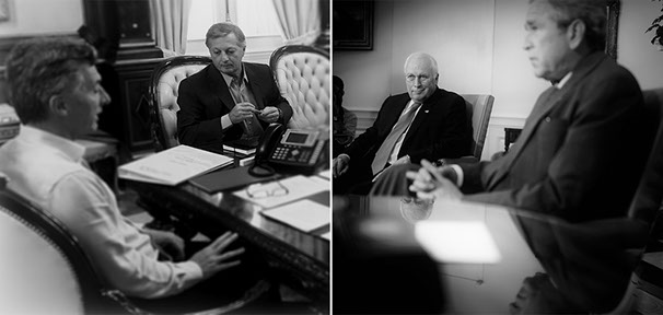 Mauricio Macri y Juan José Aranguren en la Casa Rosada. Mister Halliburton (Dick Cheney) y George W. Bush en el despacho oval de la Casa Blanca.En Argentina el modelo del presidente Mauricio Macri confía en los CEO, pero saber o conocer las empresas y accionistas de las que provienen no asegura que sepan o conozcan al Estado y a los accionistas de las empresas públicas, que nunca deja de ser propiedad de la población total del país. Dedicarse a hacer ganar a los accionistas no es lo mismo que obtener ganancia para la población total, porque la ganancia empresarial poco tiene que ver con la utilidad social, no son los mismo el corto plazo empresarial y el largo plazo de la gestión púbica, no son los mismos patrones los dueños de las empresas privadas o públicas, ni lo son los patrones de comportamiento moral.En el sector privado se roba cuando se obtienen beneficios desmesurados sin aprobación de las asambleas de asociados pero no cuando se corrompen funcionarios para elevar las tasas de ganancias. En el sector público se roba cuando se pone el Estado al servicio de intereses particulares, o sea, cuando no se reconoce que sobre la economía está la política, y sobre ésta la ética. Si no se acepta esta valoración se roba a toda la población, y se confunde corruptor con corrompidos: es la puerta giratoria de la ética ausente.
